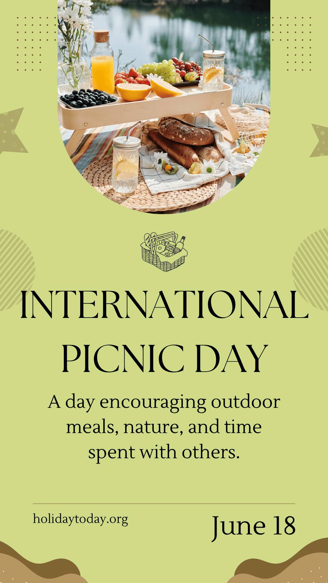 A celebration of outdoor relaxation, shared meals, and nature. People gather with food, friends, and family to enjoy time outside.