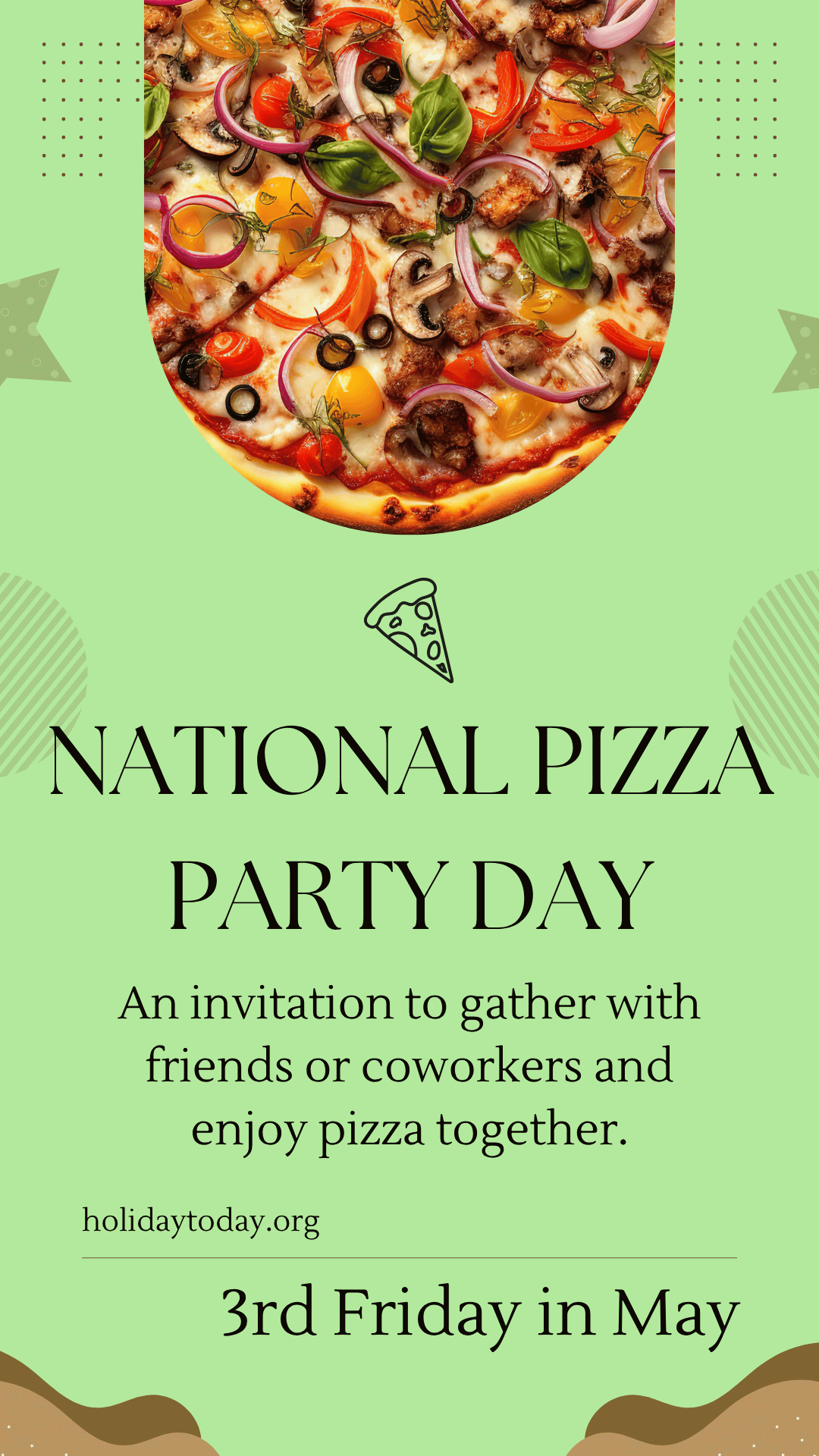 A food-themed event encouraging friends, families, or coworkers to gather and enjoy pizza together. A perfect excuse for a casual social gathering.