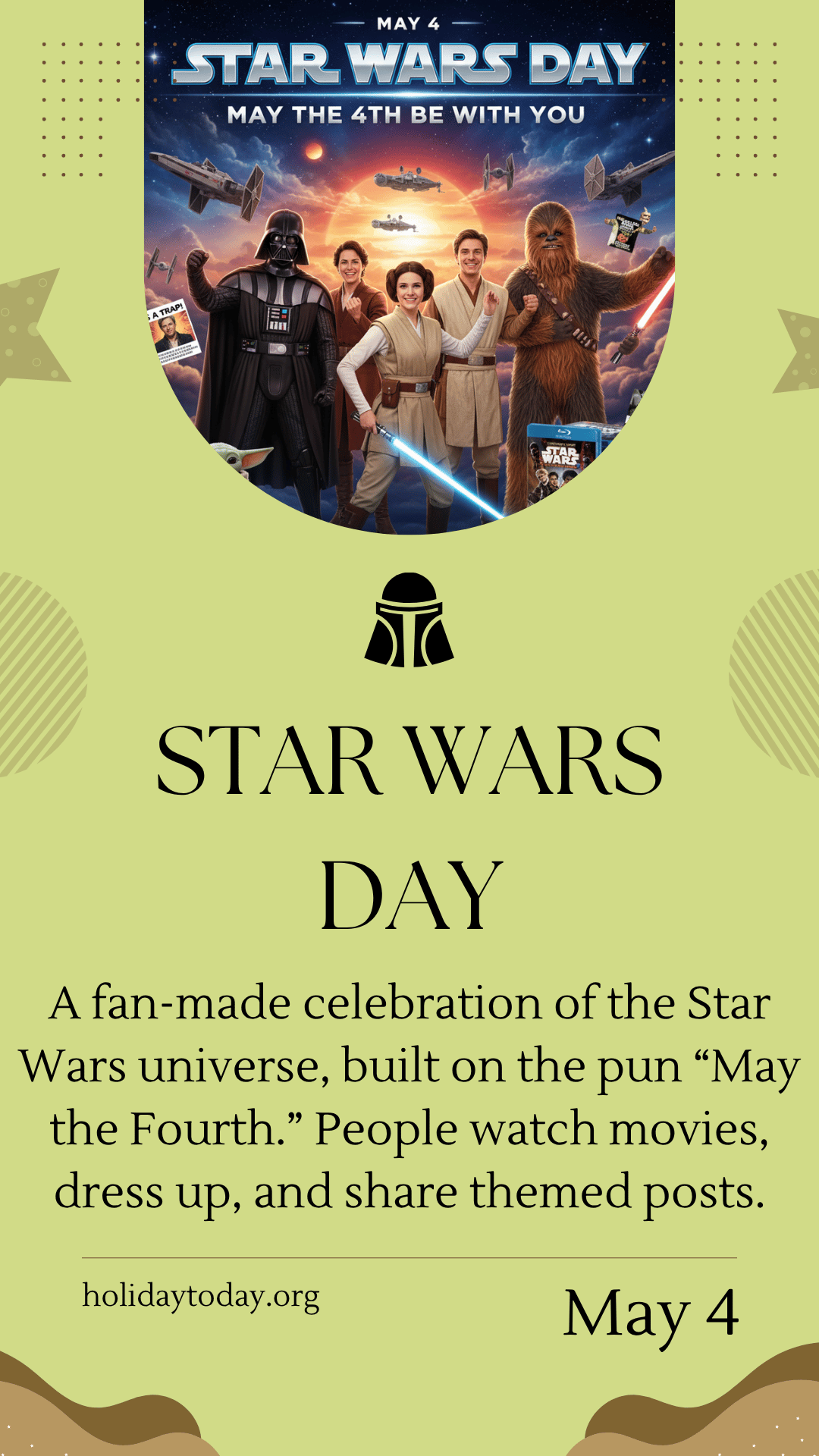 A fan-driven celebration of the Star Wars franchise, built around the pun “May the Fourth (be with you).” Fans watch the films, dress up, share memes, and celebrate the entire Star Wars culture.