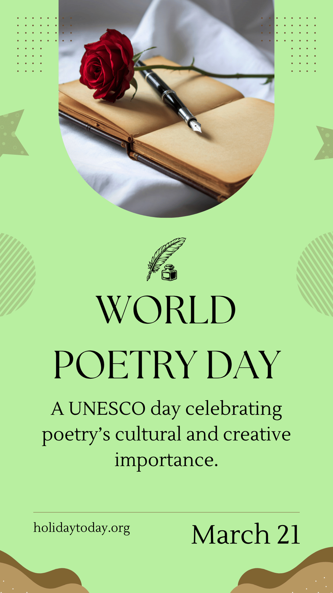 Established by UNESCO to honour poetry as a unique creative expression. The day features readings, workshops, and appreciation of poetry’s cultural role.